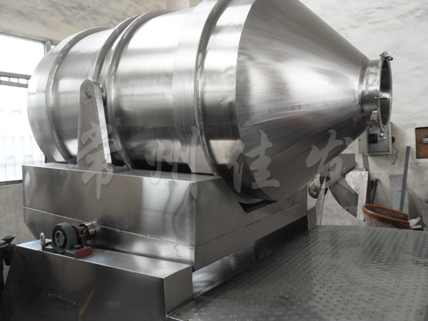本機(jī)混合筒在傳動的同時又參與擺動,使筒中物料得以充分混合,混合筒的出料帶有螺旋葉片,使該機(jī)具有混合迅速,混合量大,出料便捷等特點。